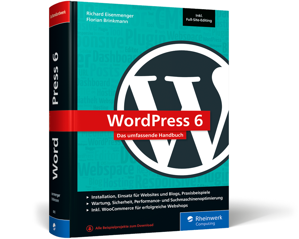 „WordPress 6 – Das umfassende Handbuch“ von Richard Eisenmenger und Florian Brinkmann ist 2022 in der 2. aktualisierten und erweiterten Auflage im Rheinwerk Verlag erschienen und umfasst 955 Seiten.